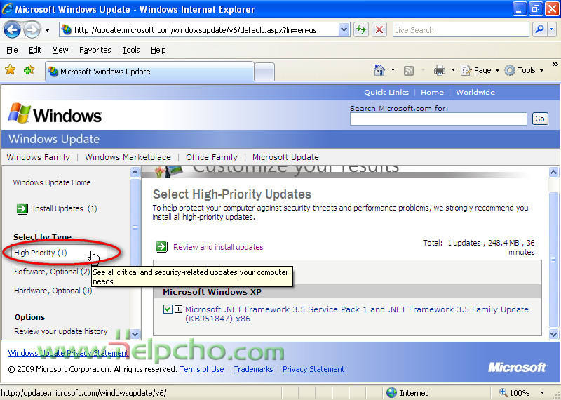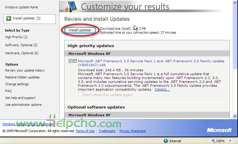 You can choose one fo the three main categories for the updates: High priority (Mainly program patches with high priority); Software, Optional (Optional patches); Hardware, Optional (Updates drivers on you system). Choose a category, it is advisable to choose at least high priority.