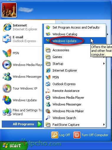 Click on Start->All Programs and then click on Windows Update.